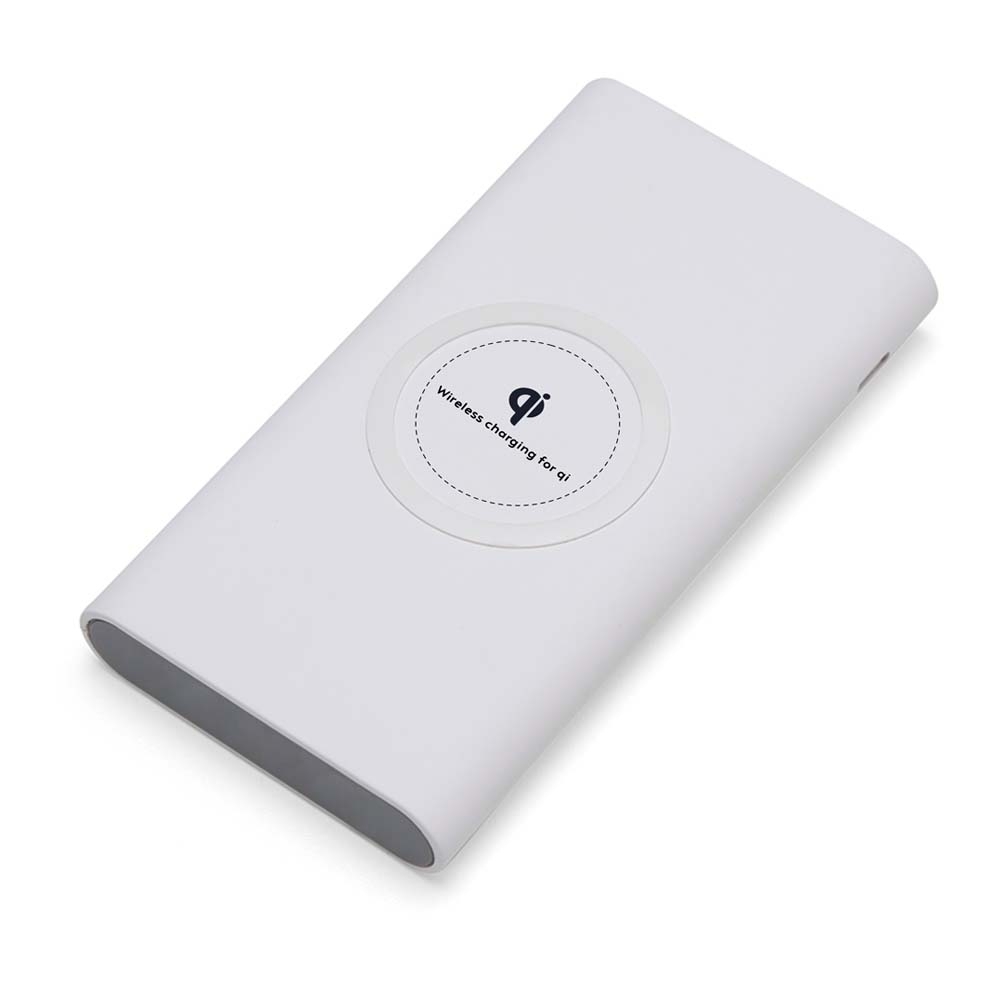 Carregador portátil de indução com 8000mAh e indicadores led de bateria e indução. O carregador contém um detalhe circular emborrachado na área de indução, proporcionado mais segurança ao dispositivo conectado, evitando deslizamentos durante este modo de carga – o lado oposto da indução possui um ícone indutivo, porém é uma mera ilustração, esta área não gera carga. O carregador possui uma porta de saída USB com carga rápida e duas portas de entradas, Tipo-C e V8. Acompanha cabo USB.