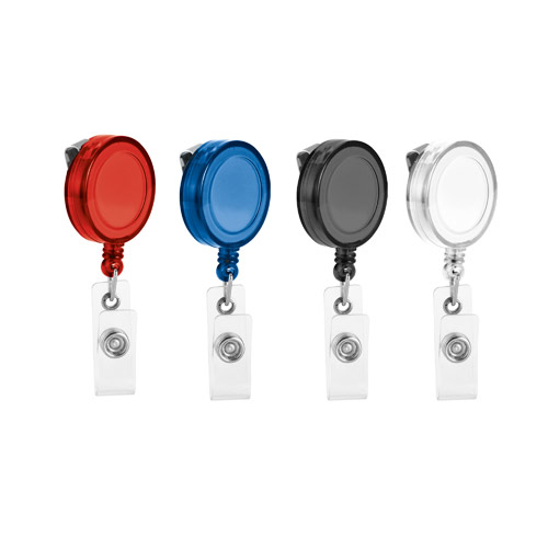 YEATS. Porta crachá com clipe metálico com mecanismo extensível até aos 900 mm. Com presilha transparente e botão para adicionar bolsa porta-cartões. O mecanismo retrátil permite apresentar seu cartão ou credencial com segurança e comodidade.