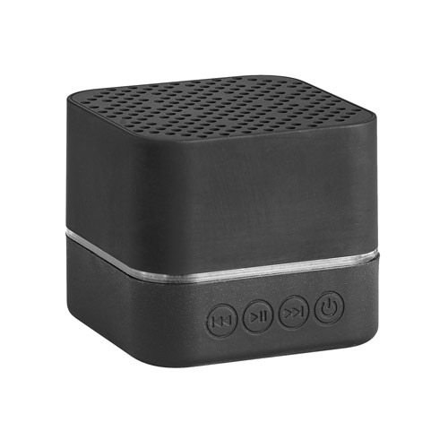 EDISON BK. Caixa de som portátil, com luz LED no interior, em ABS e acabamento emborrachado. (personalizável com logótipo iluminado). Transmissão por bluetooth 4.2 e potência de 3W (4Ω). Bateria com 300 mAh e autonomia superior a 2h. Incluso cabo 2 em 1: USB / micro USB para carregamento e micro USB/3.5 jack. Fornecida em caixa.