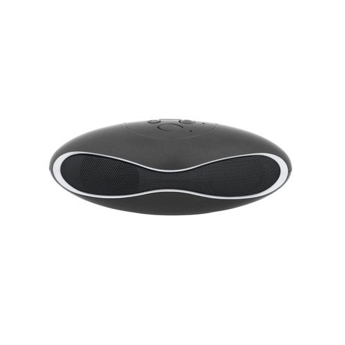 EUCLIDEAN. Caixa de som com microfone em ABS e acabamento emborrachado. Transmissão por bluetooth, potência de 3W/4Ω e autonomia até 3 h. Função para atender chamadas, controle de volume e conexão à playlist do dispositivo móvel. Incluso cabo USB para carregar. Fornecida em caixa presente.