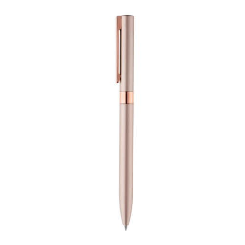 CLARE. Esferográfica em alumínio com mecanismo twist e clipe. Disponível em elegantes cores. Até 2 km de escrita. Carga esferográfica preta.