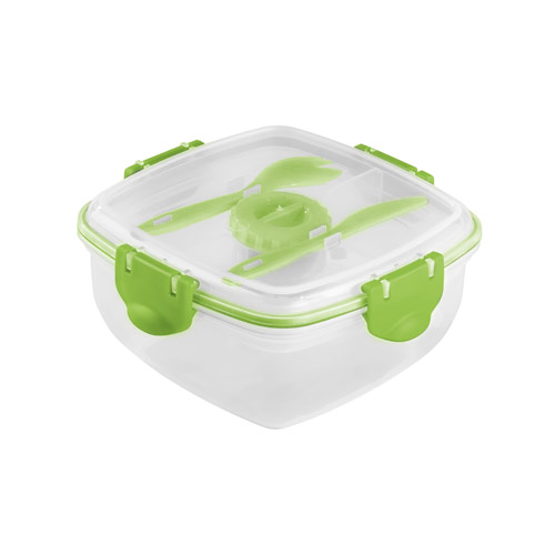 CILANTRO. Marmita em PP com 3 compartimentos e capacidade até 1.200 ml. Apta para microondas (retirar a tampa). Incluso garfo, faca e molheira.